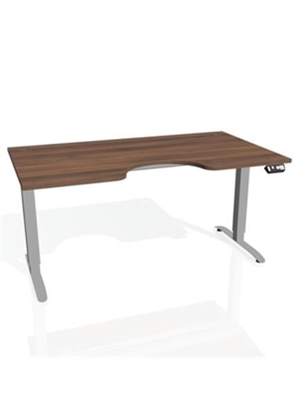 - obdĺžnik s výrezom, šírka 160 cm, hĺbka 90 cm, výška 70,5 až 120,5 cm. Pracovná doska hrúbky 25 mm s ABS hranou 2 mm. Kovové elektricky výškovo nastaviteľné nohy s dokonalou pevnosťou a stabilitou aj v najvyššej polohe a tichým plynulým chodom. Pamäťový ovládač s možnosťou uloženia 4 pozícií a zobrazenie aktuálnej výšky. Nosnosť stola až 100 kg! Priechodky v rohoch stola pre zvedenie káblov pod dosku. Káblové príchytky pod doskou pre ďalšie vedenie kabeláže.