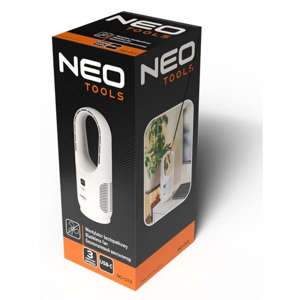 -013 značky NEO TOOLS je praktické a tiché zariadenie s 2200 mAh batériou. Ponúka tri rýchlostné režimy s dobou prevádzky od 3 do 12 hodín, pričom sa nabíja za 2 až 3 hodiny (funguje aj pri nabíjaní). Je vybavený digitálnym displejom, ktorý zobrazuje aktuálnu spotrebu energie. Má energeticky efektívny dizajn a poskytuje jemný prúd vzduchu, čo ho robí ideálnym pre každú domácnosť.